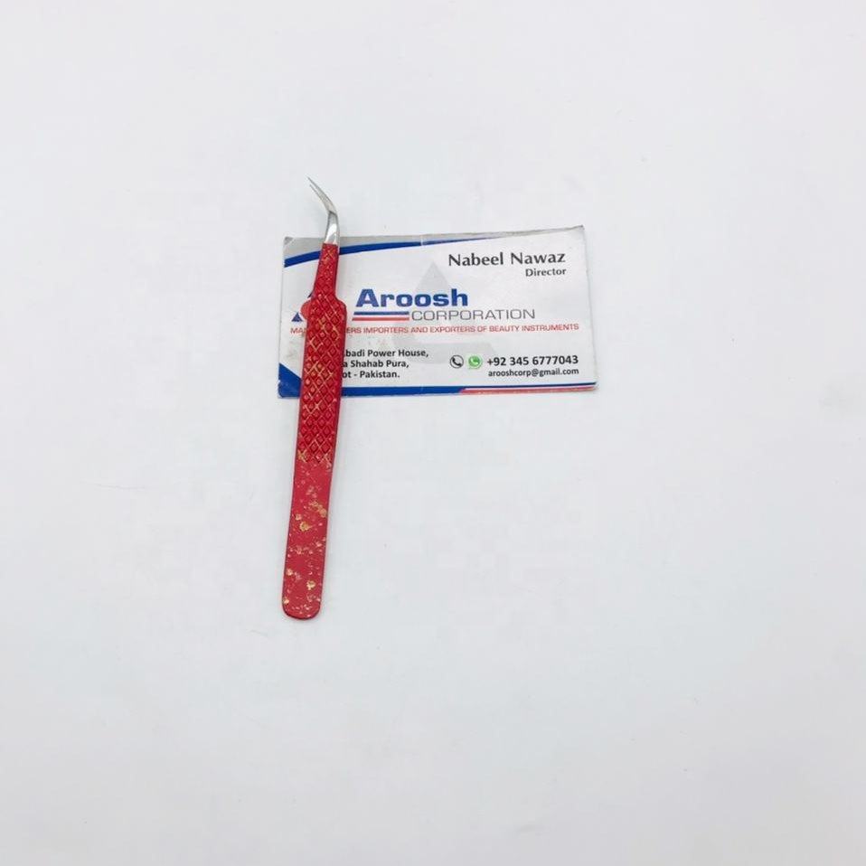 Pinzas con purpurina dorada J Curve, pinzas para pestañas con agarre de diamante de acero inoxidable con revestimiento rojo, extensiones de pestañas sostenibles puntiagudas