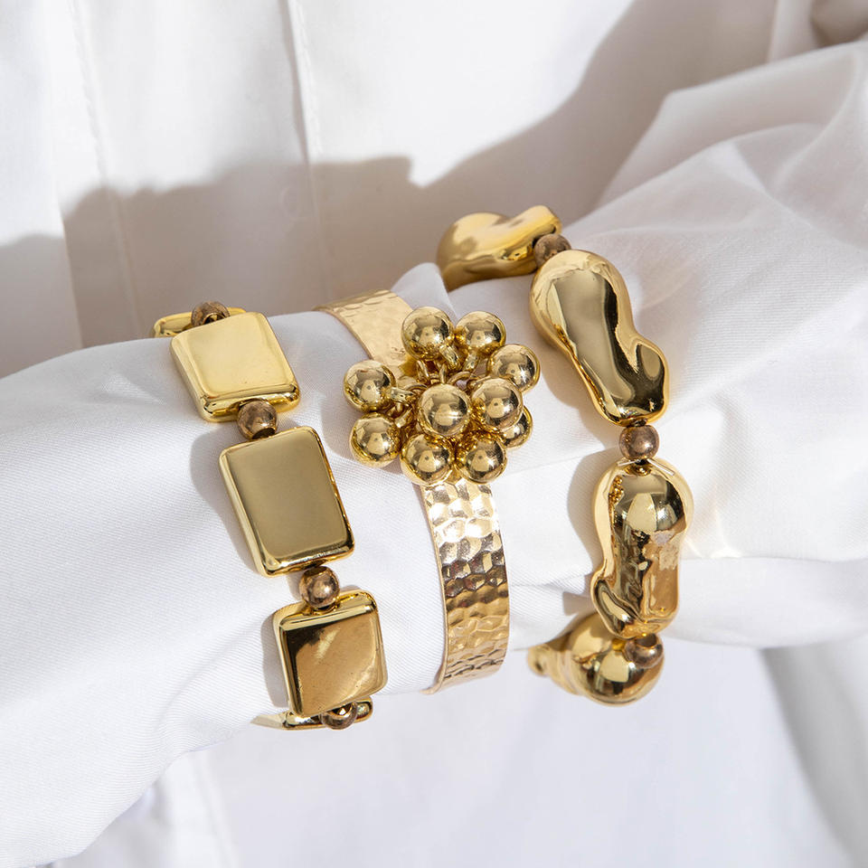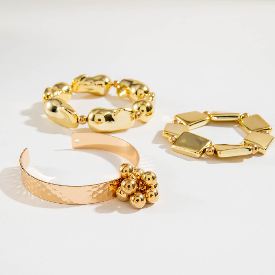 Juego de Pulseras Abiertas con Líneas Geométricas y Cuentas Estilo Punk para Mujer, Joyería Dorada de Moda para Bodas, Compromisos y Fiestas