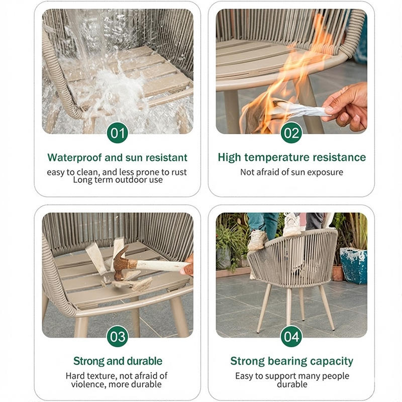 Silla de Ratán Tejida con Cuerda J2S, Conjunto de Muebles de Patio de Lujo para Resort de Playa, Asientos Comerciales Modernos para Exteriores, Muebles para Restaurantes