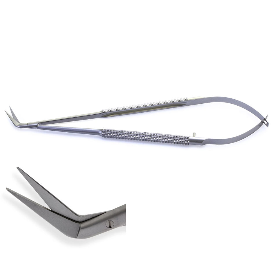 Tijeras Anguladas con Resorte JACOBSON, Mango Plano, Hojas Finas, Longitud Total 6.5 Pulgadas (16.5 cm), Herramienta Microquirúrgica ZETOMEDPRO