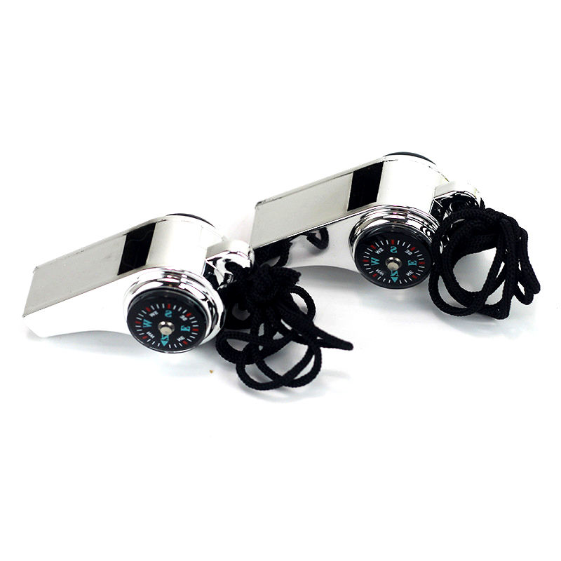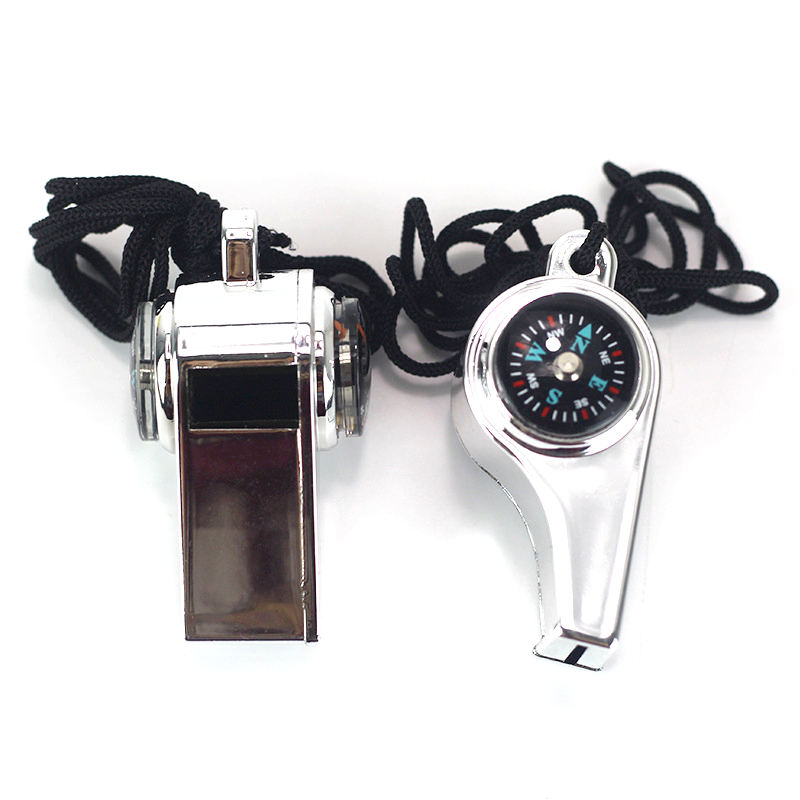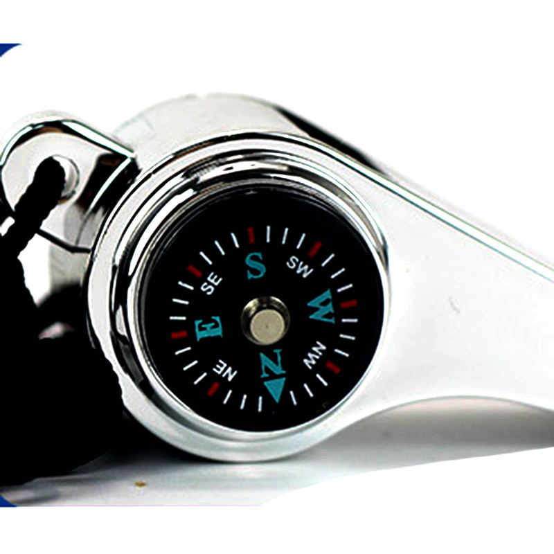 Silbato de Emergencia Multifunción de Metal Pulido JAXY MH3-2, 3 en 1, Brújula Salvavidas, Termómetro