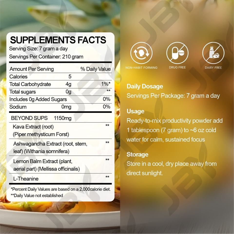 JBY Serenity Calm Plus en Polvo, Salud Natural del Estado de Ánimo, Soporte de Relajación Suave, Control del Estrés, Suplementos Diarios para la Salud en Polvo