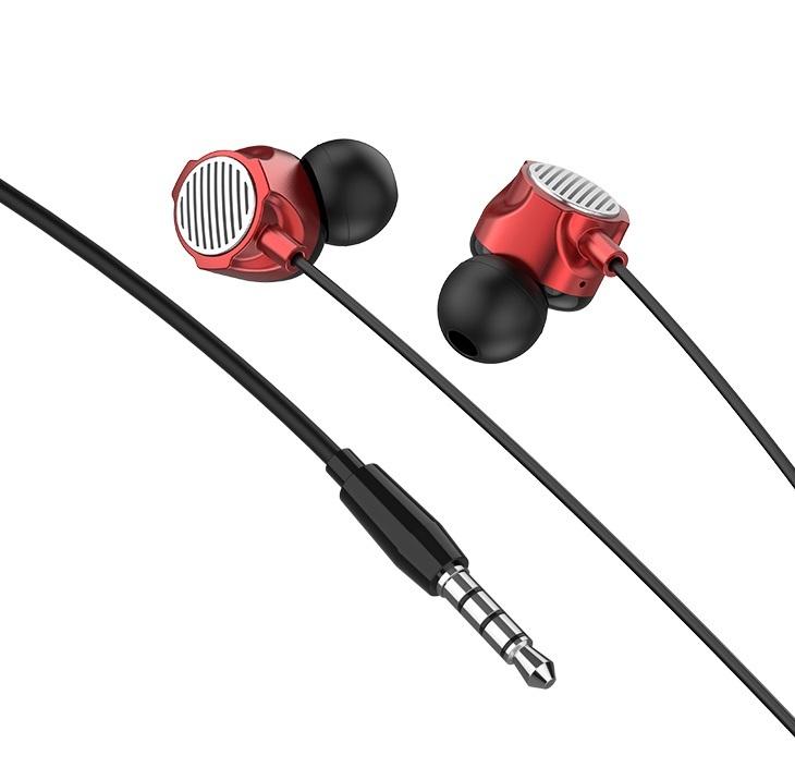 Auriculares internos rojos JD040 con micrófono de 1,2 m de longitud para uso telefónico