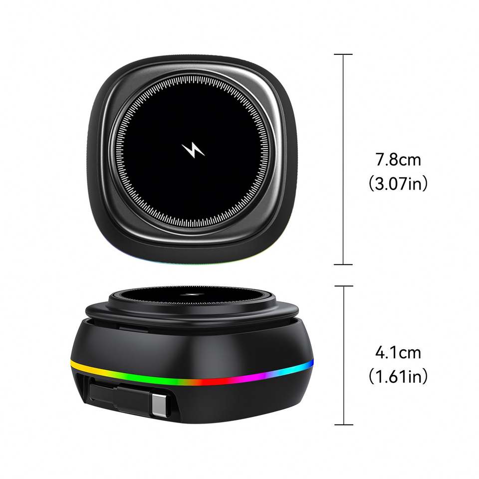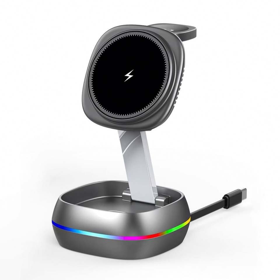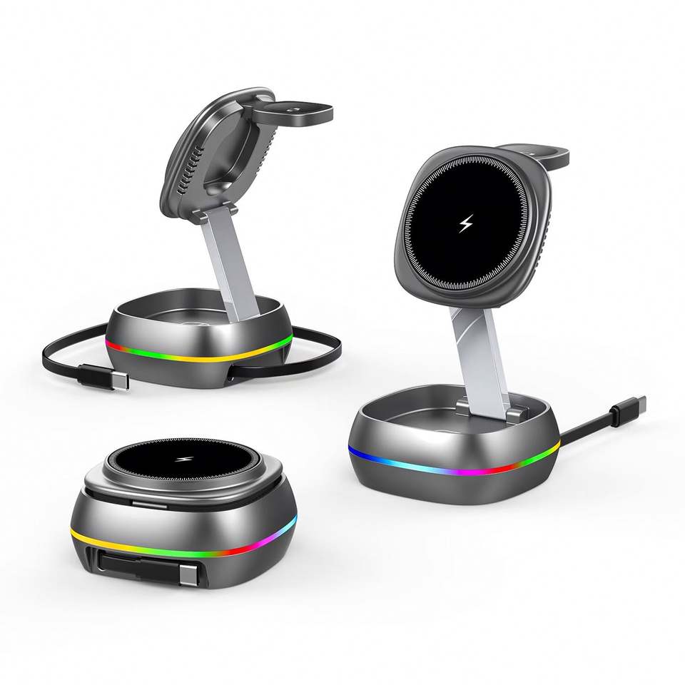 Cargador Inalámbrico Magnético 3 en 1 con Luz LED de Nuevo Diseño JEDI, Soporte Plegable Mini de 15 W, Estación de Carga Rápida de Escritorio con Cable