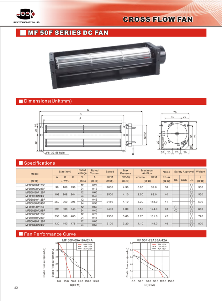 Ventilador Tangencial de Flujo Cruzado de Aleación de Aluminio JEEK, Motor de 24 V y 2600 RPM, OEM, Ahorro de Energía, Protección Térmica para Chimenea