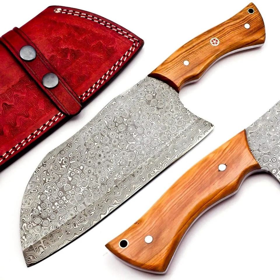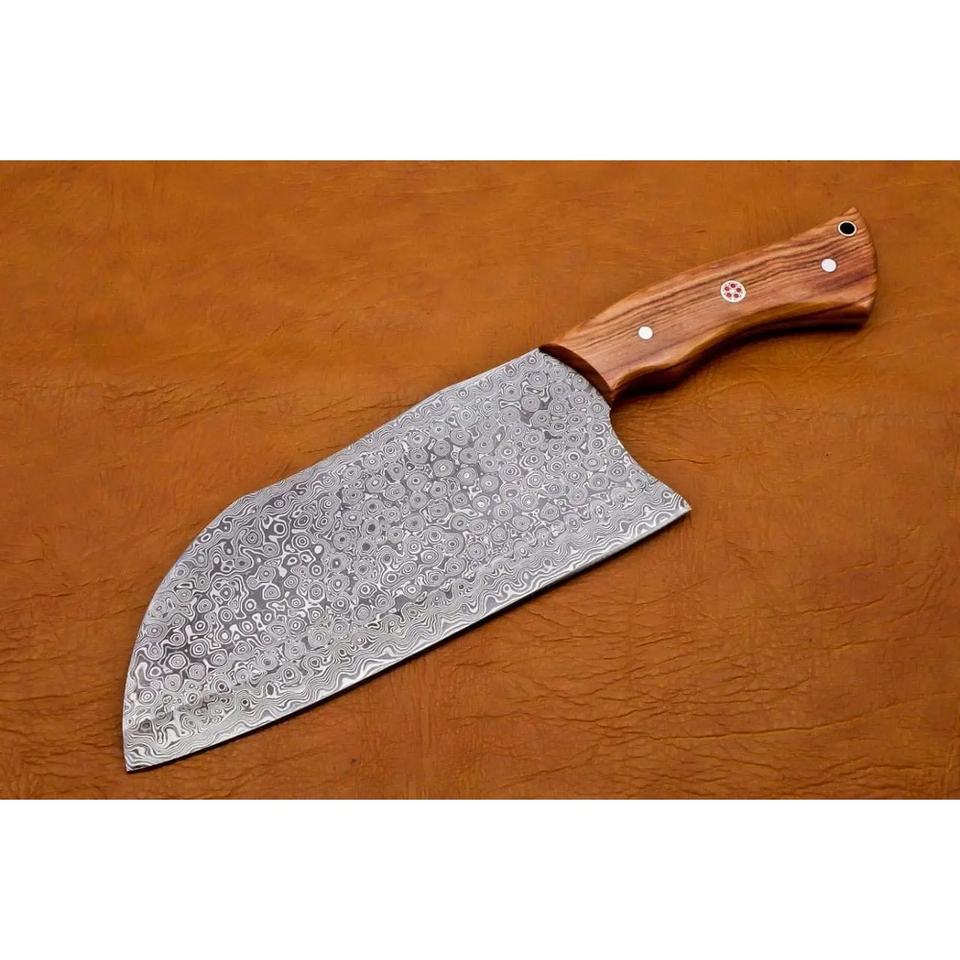 Cuchillo de Cocina JEXMOO OEM Hecho a Mano, de Acero de Damasco de Grado Industrial, Multifuncional, con Patrón de Gota de Lluvia, Funda de Cuero