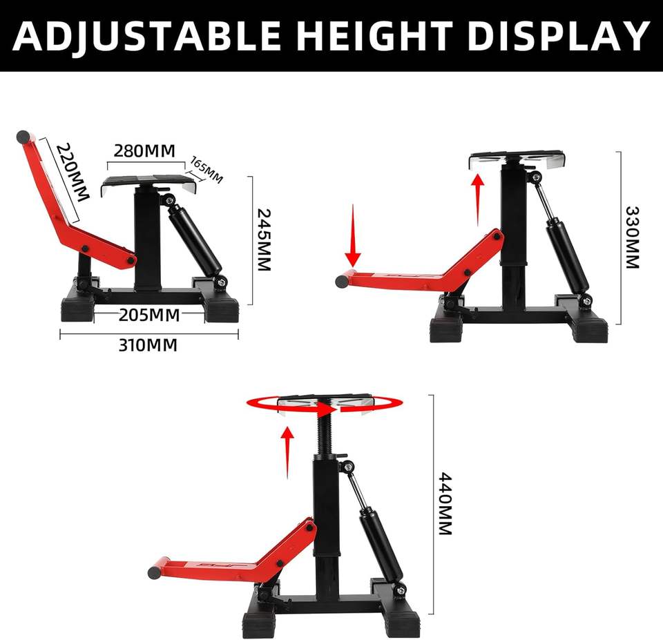 Soporte Elevador de Motocicleta JFG de Altura Ajustable, de Acero Resistente, para Mantenimiento de Motos Todoterreno, con Amortiguador Hidráulico