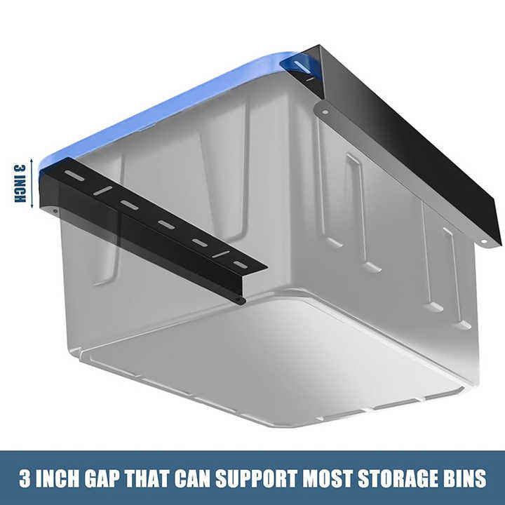 JH-Mech 4 juegos de estante de techo, estante de almacenamiento superior para contenedores, soporte para la mayoría de contenedores, estante de almacenamiento de techo de garaje resistente