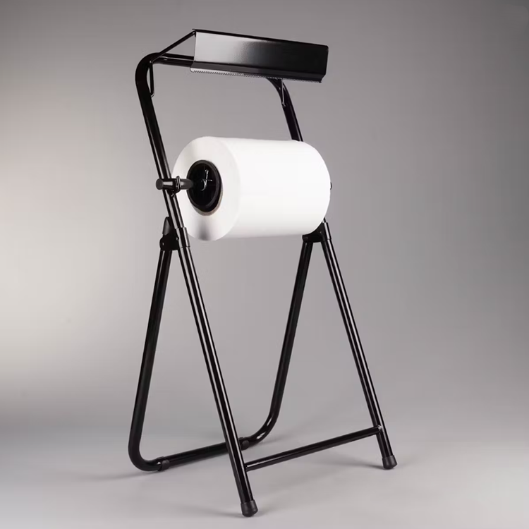 Dispensador de limpiaparabrisas Proworks personalizado JH-Mech, resistente, ahorro de espacio, soporte de suelo para rollo de papel de Metal recubierto de polvo negro