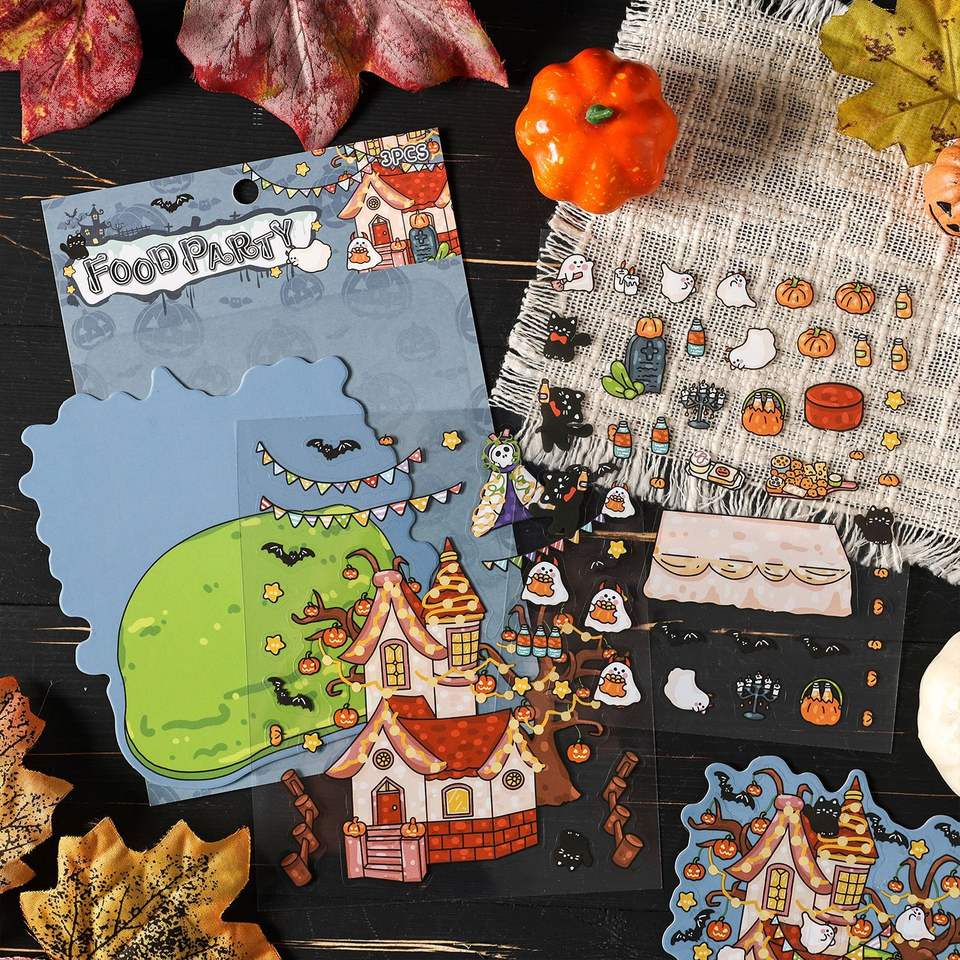 Pegatinas 3D de Paisaje Hechas a Mano JHM, Lindas y Creativas, con Escenas de Cartas Antiguas para Decoración de Carnaval, Manualidades, Impresión UV