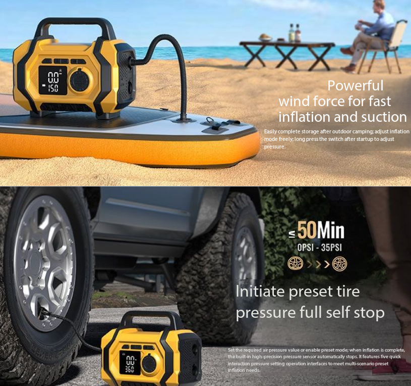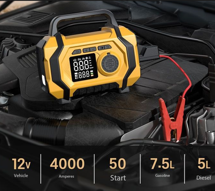 Arrancador de coche, bomba de aire, soplador de polvo, batería externa, iluminación