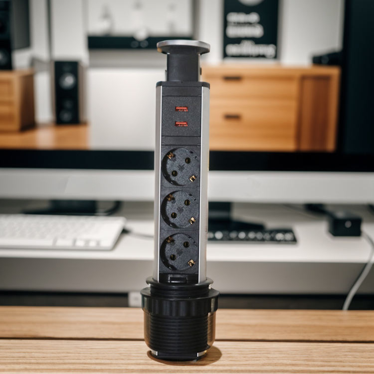 Product name:cylinder pull up sockets EU Plug with double USB charging for kitchen