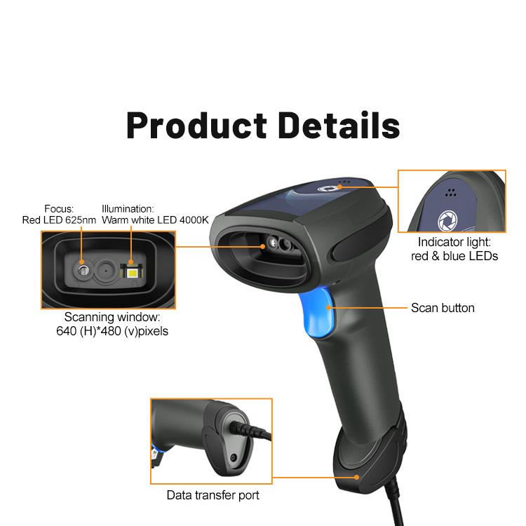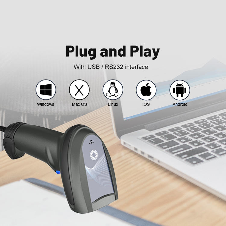 Escáner de Código de Barras Manual con Cable JINGXIN, Conexión USB RS232, Plug and Play, para Códigos Complejos