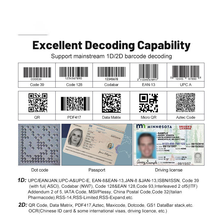 Capacidades de Decodificación:Código 1D + 2D + QR