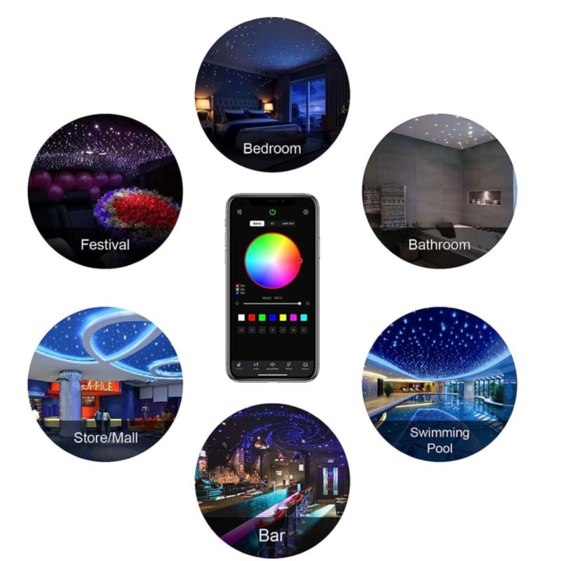 Kit de Iluminación de Fibra Óptica LED RGBW JINXIN de 32W con Efecto de Cielo Estrellado, Controlado por Aplicación de Música para Auto/Cine en Casa