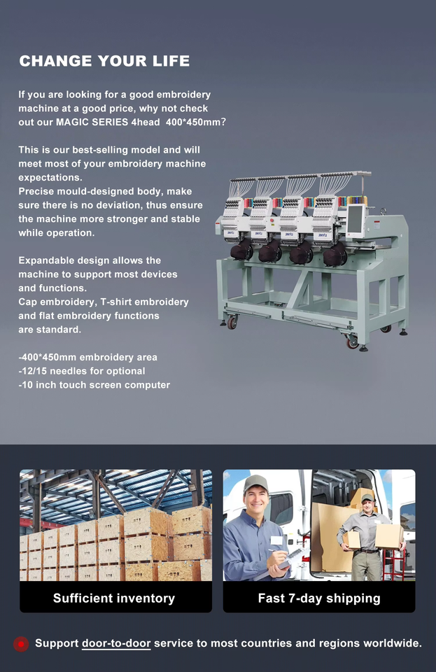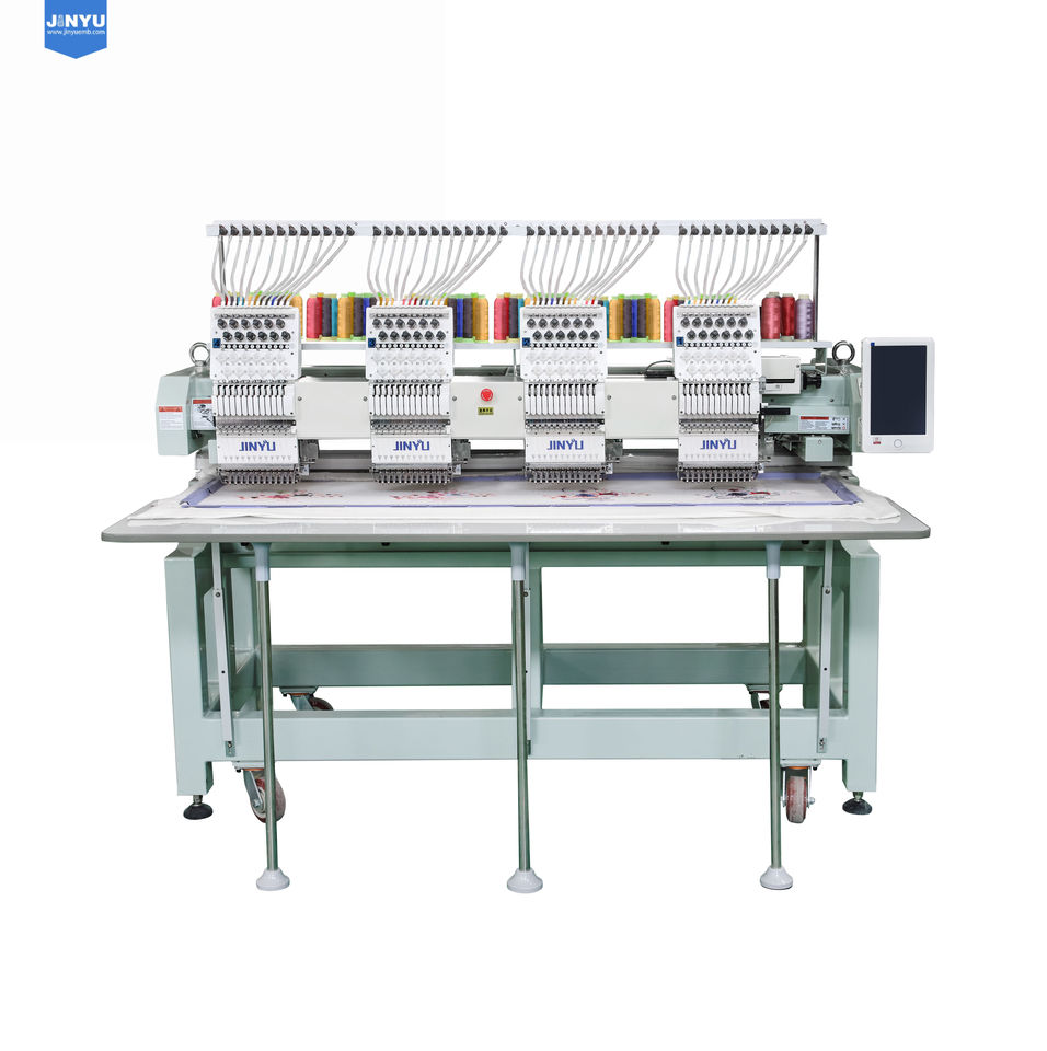 JINYU máquina de bordar multifuncional de 4 cabezales para gorras y prendas, bordado plano de alta calidad, bordadora, 50% depósito 50% saldo