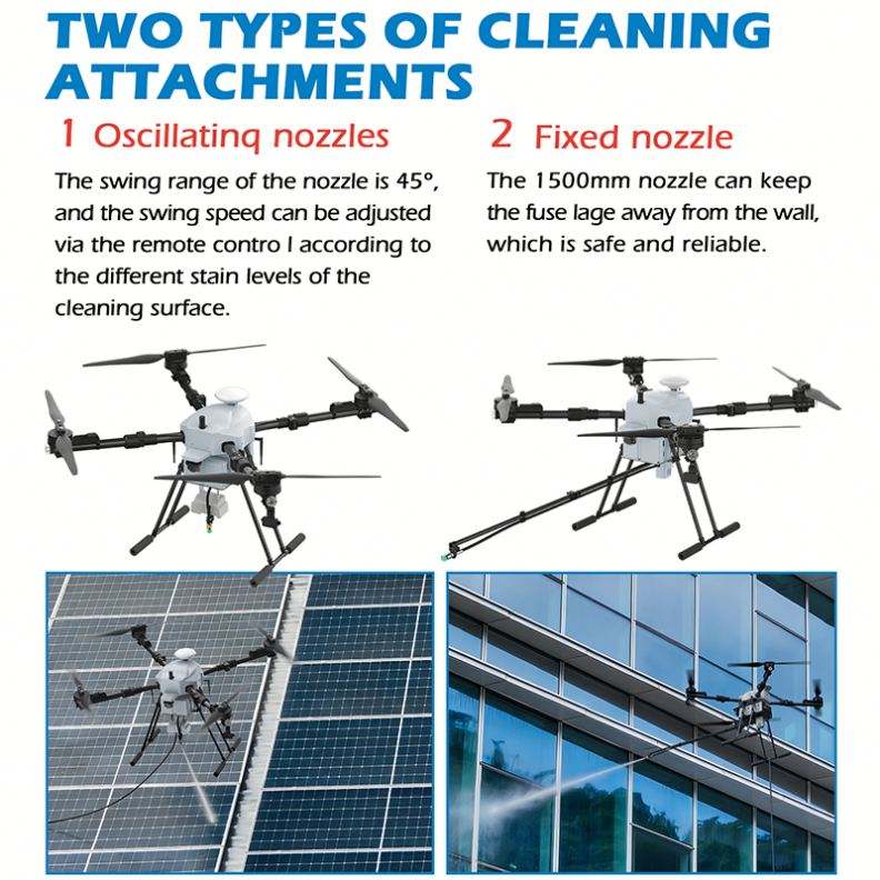 JIUSI D15R Dron Comercial de Limpieza de Edificios con Control Remoto para Operadores Expertos, Dron de Limpieza de Ventanas y Paredes de Alta Presión