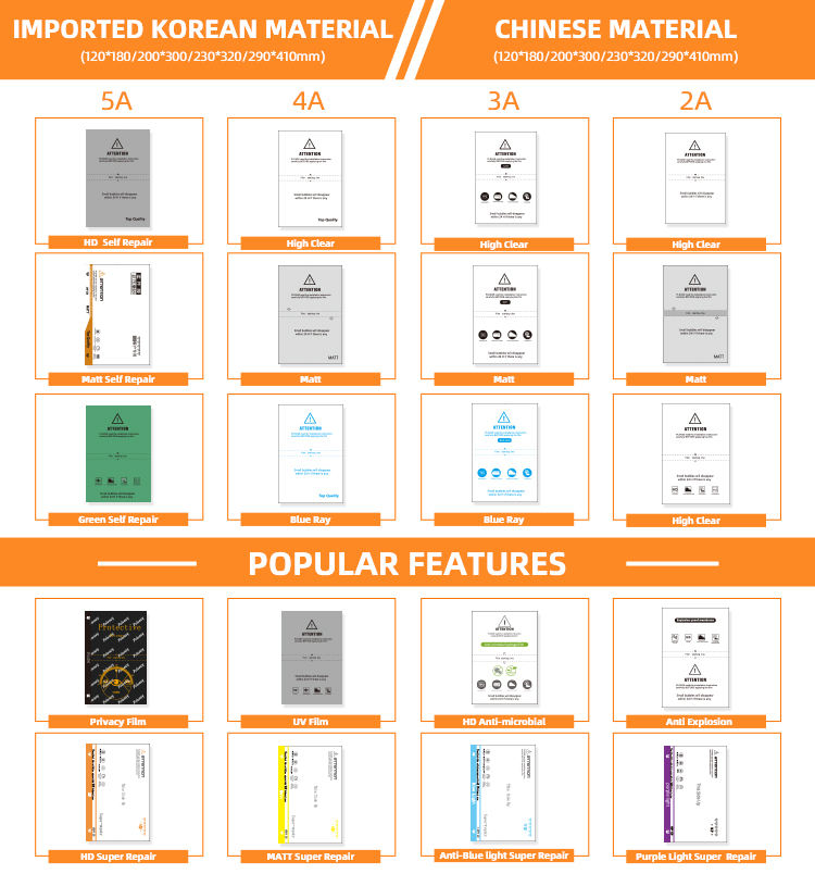 Anti-Scratch, Anti-huella digital, Anti-explosión, Anti-espía, Transparente, Anti shock, La pegamento, Resistente a la suciedad, La cobertura completa, Anti-aceite de, Anti-glare, Impermeable, Ultrafino, Libre de burbujas, HD claroFunción