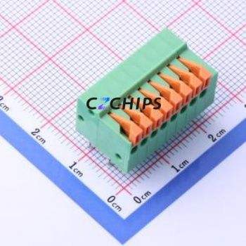 JL141R-25408GA1 Spring Terminal Block Bent Lead Through Hole,P=2.54mm Connector 1x8P 2.54mm Green Right Angle Insert