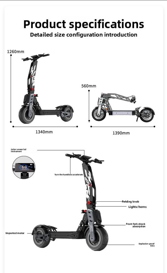 Scooter Eléctrico JLM F9 de Fábrica con Llantas de 12 Pulgadas, 8000W, 60V, Batería Desmontable, Plegable, Motor Dual