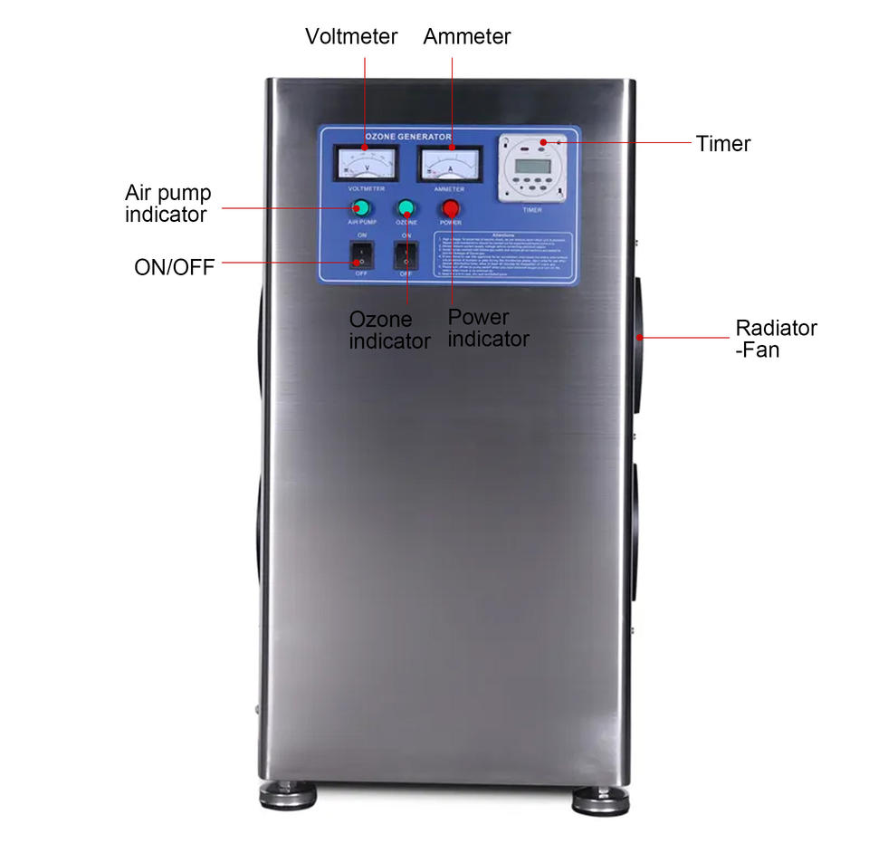 De la bomba, Motor, PLC, ozone generatorLos componentes principales.