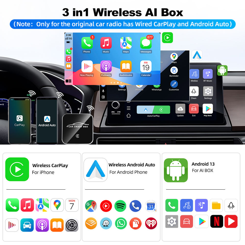 Modelo de coche:Para CarPlay con cable de coche OEM a CarPlay inalámbrico
