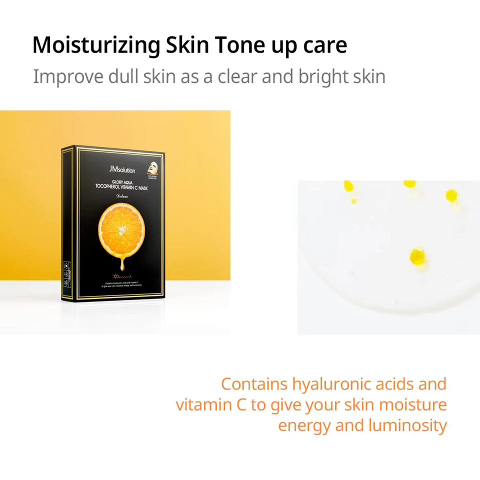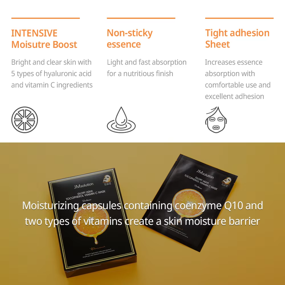 JMSOLUTION GLORY AQUA TOCOPHEROL VITAMINA C MASK PLUS Hecho en Corea Venta caliente Producto para el cuidado de la piel (1 Unidad = 10 piezas) proveedor Coreano