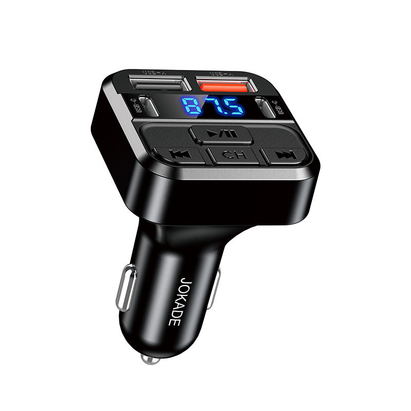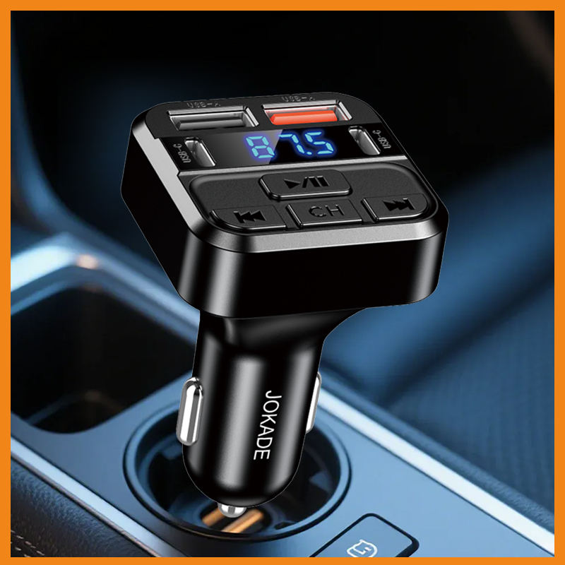 JOKADE 2025 Nuevo Transmisor FM Inalámbrico 5.4 para Auto, Cargador de 25W Tipo-C y USB-A 5V/5A de Carga Rápida, Compatible con Tarjeta USB/TF y Pantalla LED