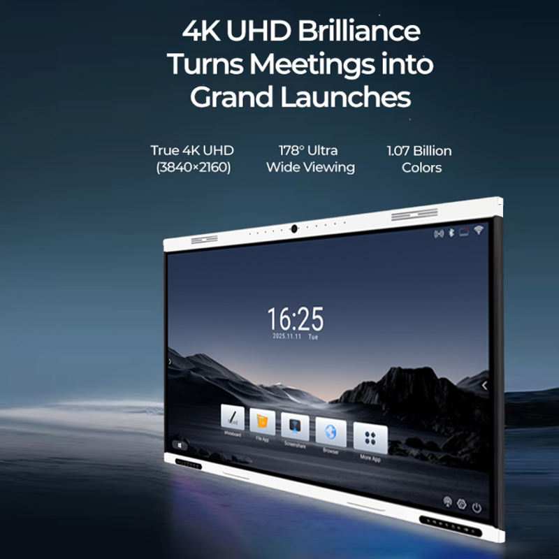 Pantalla 4K UHD: Proporciona imágenes más claras y detalladas, mejorando la experiencia visual tanto para la enseñanza como para las presentaciones.