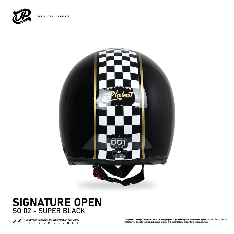 Helm Retro Half Face JP Signature Motivo abierto SO 02 Negro metalizado