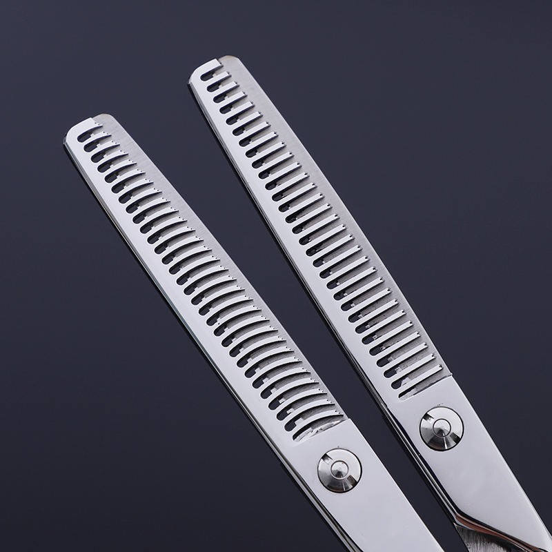 Tijeras de entresacar JQ de 6.0 pulgadas, de acero inoxidable, con 30 dientes, planas, para cortar el cabello, para diestros, herramientas profesionales de barbería