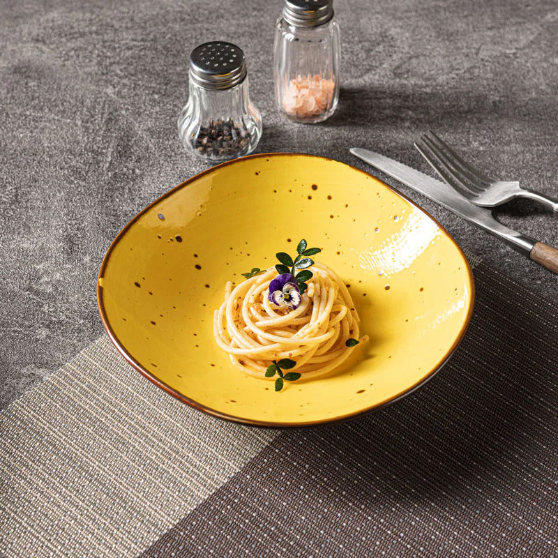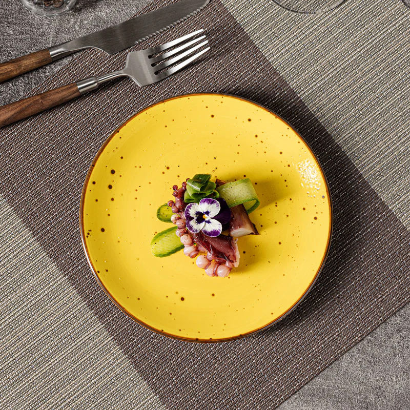 Juego de Platos de Cerámica JQY, Vajilla Amarilla Esmaltada, Hechos a Mano, con Diseño Rústico, Platos de Porcelana para Restaurante