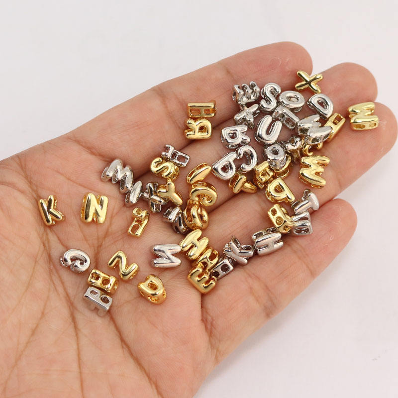 JS1726 popular minimalista mini «bubble», chapado en oro 18K, dijes deslizantes 3D tipo puff con inicial alfabética, cuentas