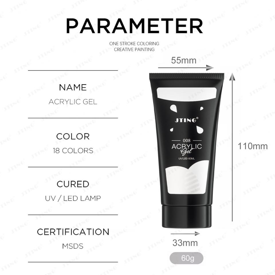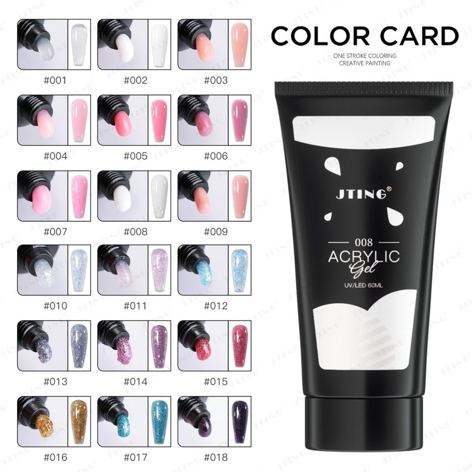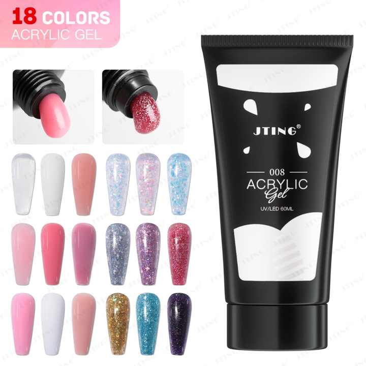 JTING Kit Profesional de Gel Acrílico de Alta Calidad de Construcción Rápida, 18 Colores, Tubo de 60ml, para Extensión de Uñas, Gel Acrílico con Purpurina, Poly Gel