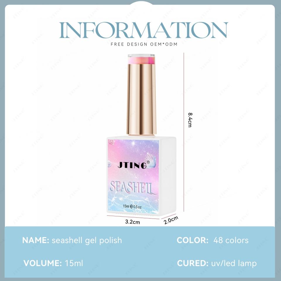 JTING Nueva Colección Popular de Esmaltes en Gel con Diseño de Conchas Marinas, Set de 48 Colores en Caja con Libro de Colores Único, OEM, Marca Privada, Esmalte de Uñas en Gel Dream Summer
