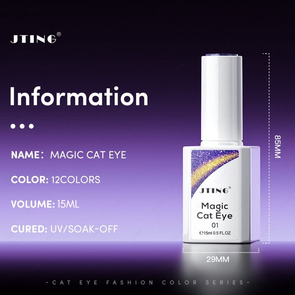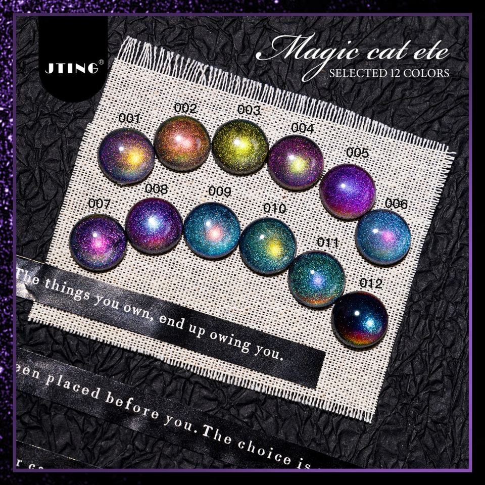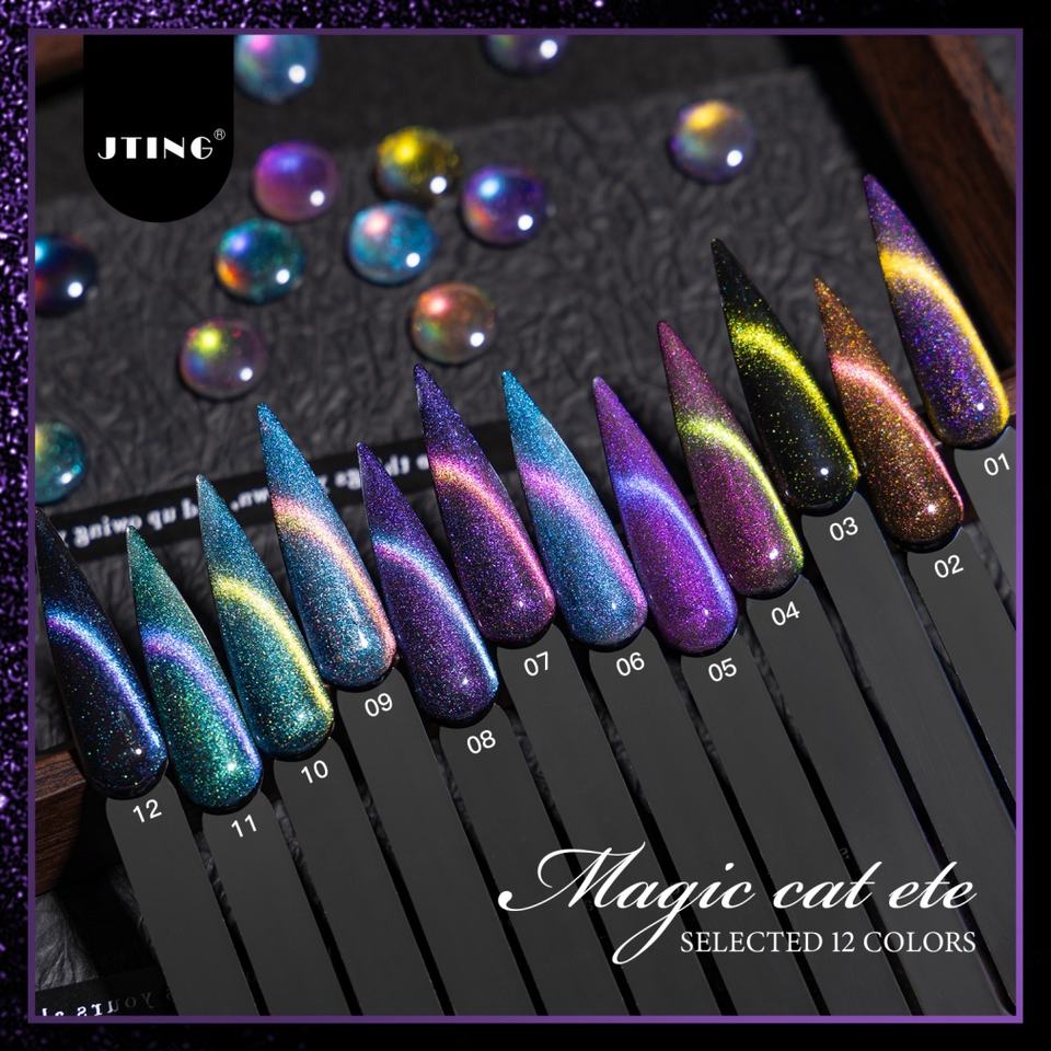 Esmalte de Uñas en Gel JTING Efecto Ojo de Gato Mágico Único, 12 Colores Especiales con Efecto de Luz Reflectante, Libre de TPO/Hema