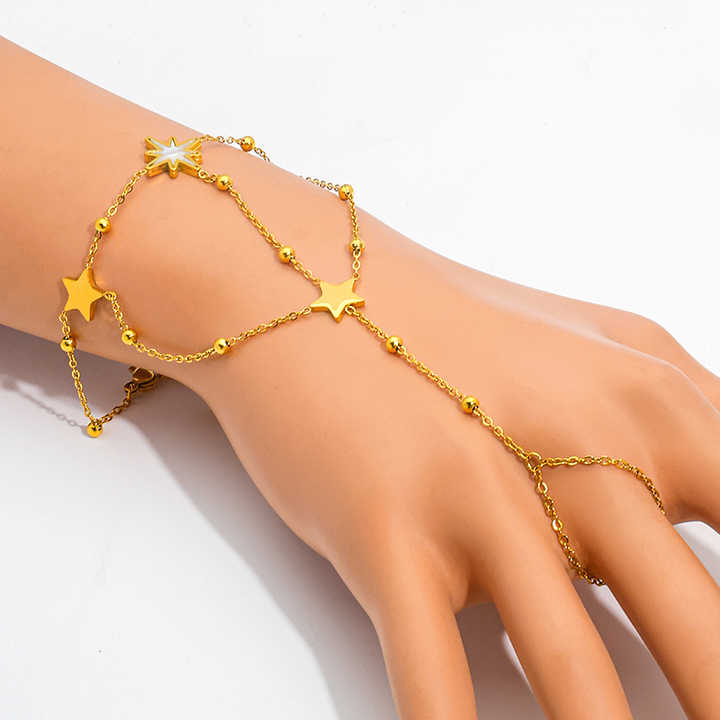 Juego de Pulsera y Anillo JUSNOVA con Doble Cadena Chapada en Oro de 18k, Cristales y Piedras de Imitación