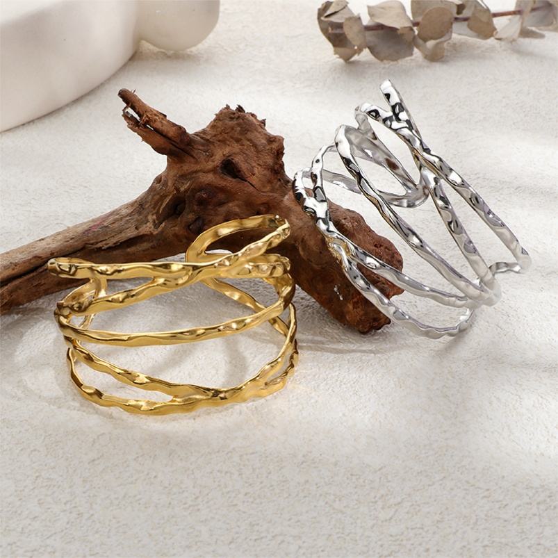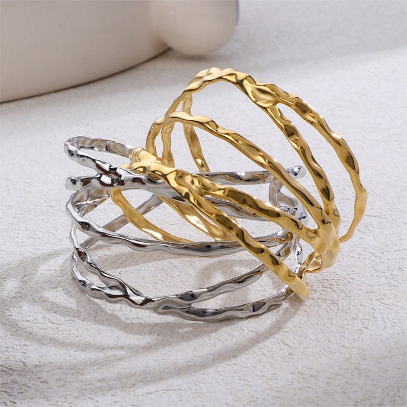 Brazalete JUSTOP Personalizado de Acero Inoxidable, Diseño Geométrico Hueco, Multicapa, Chapado en Oro de 18K, Impermeable, Ancho, Unisex