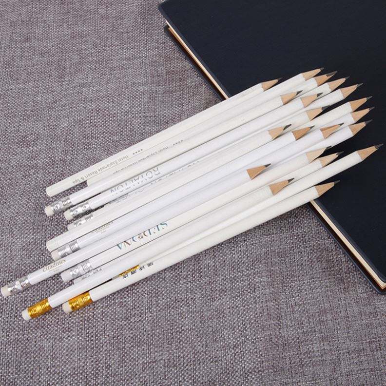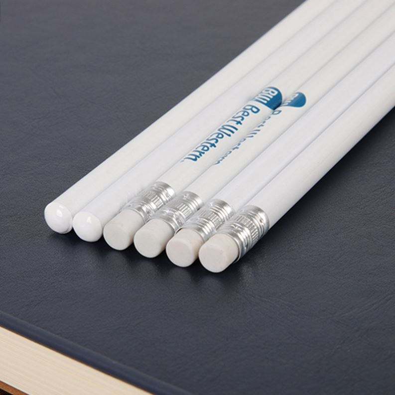 JW1146 Promoción Lápices Blancos Personalizados con Logotipo Impreso y Borrador, Lápices de Grafito de Madera Personalizados al por Mayor