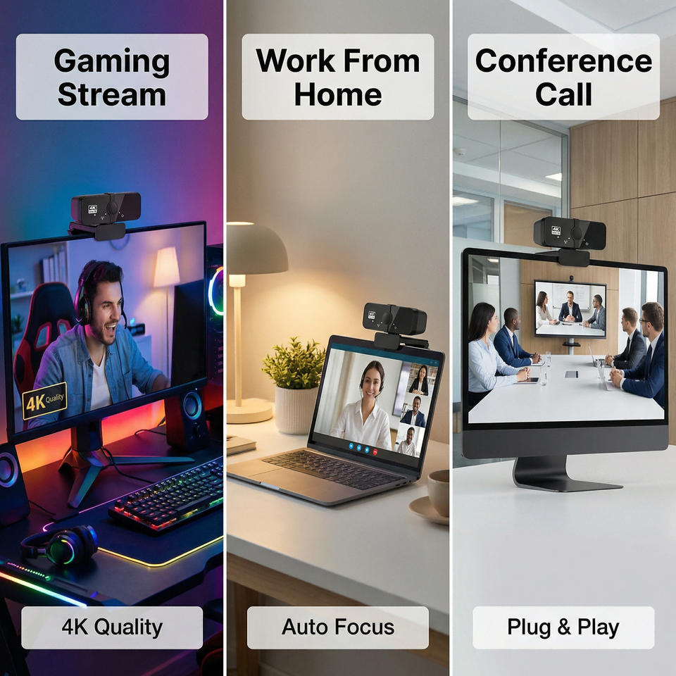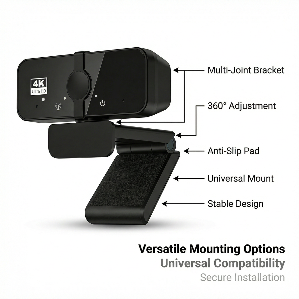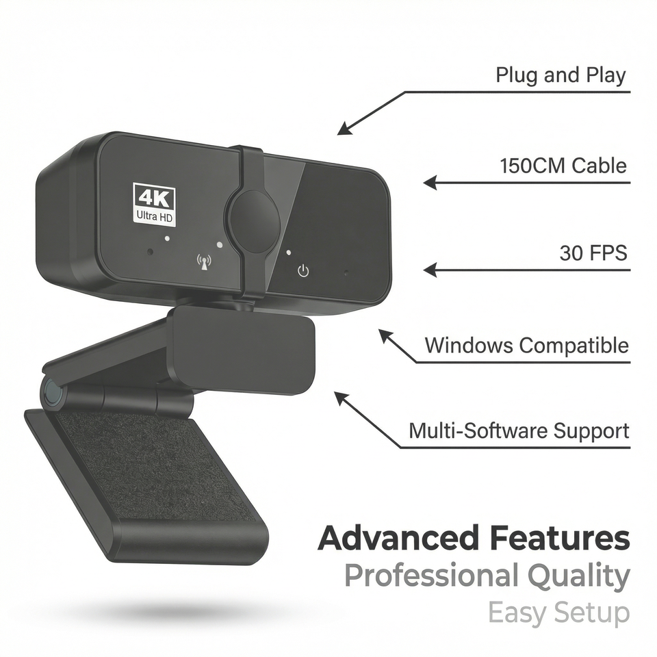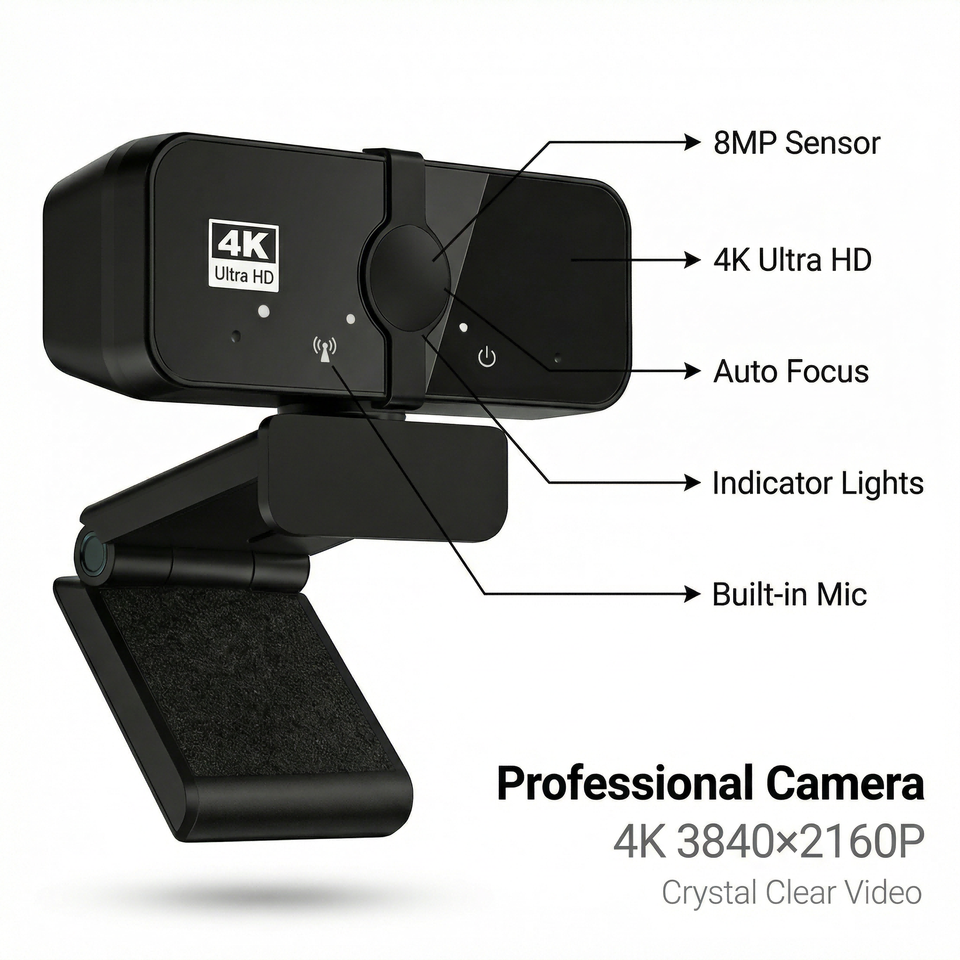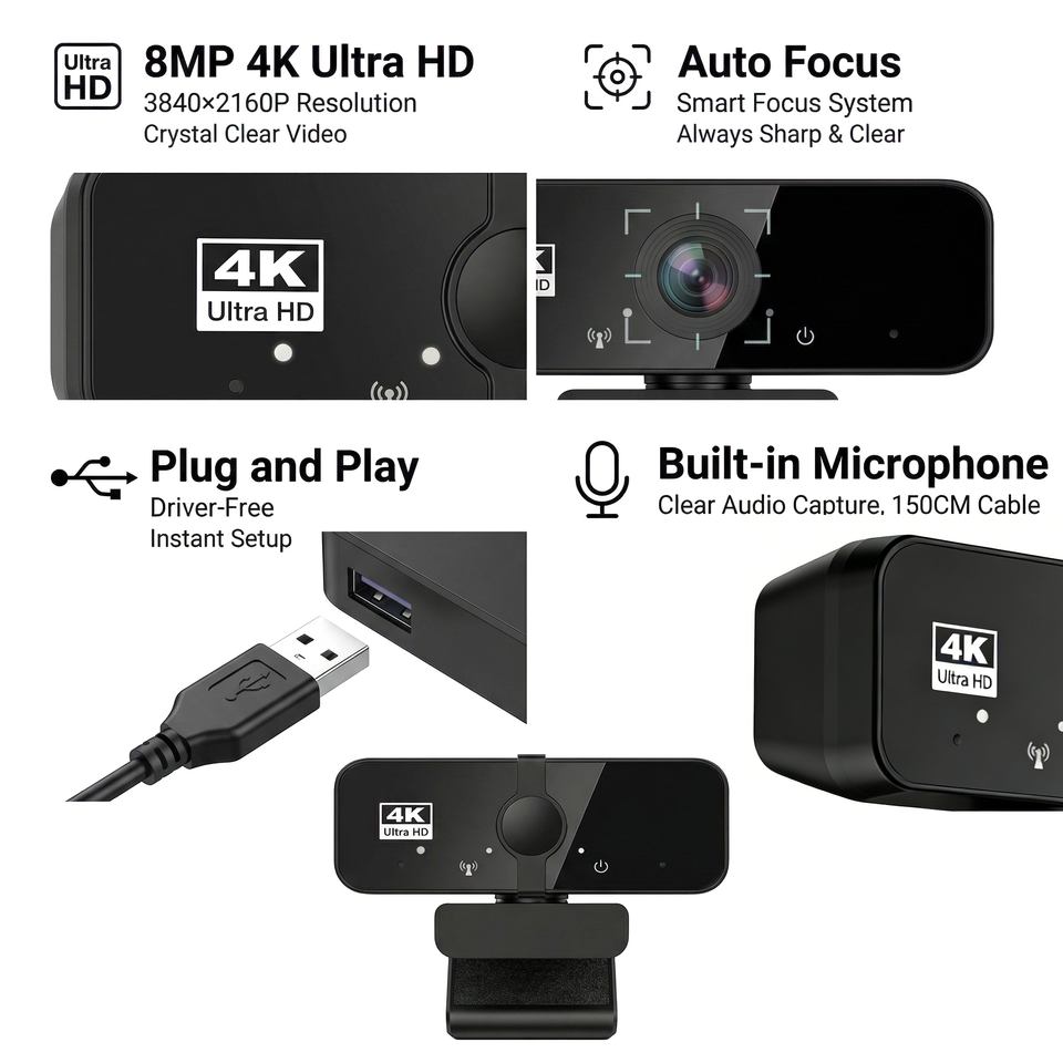 Cámara Web 4K para PC JWC027 con Micrófono Integrado, Plug and Play, para Videoconferencias, Transmisión en Vivo y Cursos en Línea (8MP 30fps)