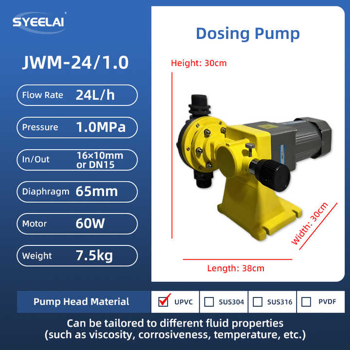 Bomba Dosificadora de Diafragma JWM 24LPH 1.0MPa con Caudal Ajustable, Bomba Dosificadora de Productos Químicos PAC/PAM OEM para Tratamiento de Aguas Residuales