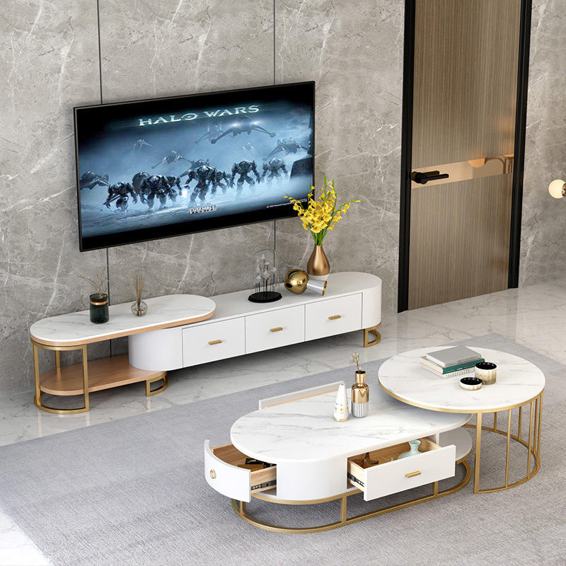Mesa de Centro JXT Estilo Nórdico con Mueble para Televisión, Combinación para Sala de Estar Familiar Pequeña, Mesa de Centro Redonda Familiar, Mueble para Hotel