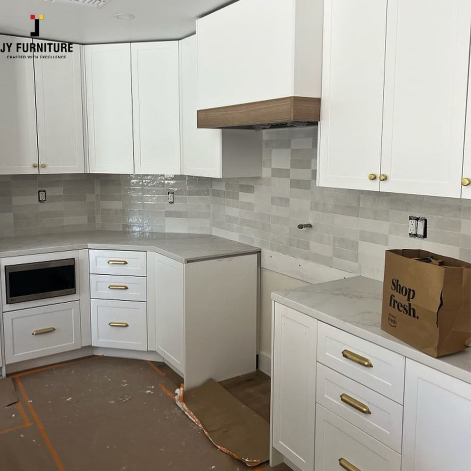 JY Muebles Minimalista Estilo Europeo RTA Melamina Acabado Tamaño Personalizado Madera Gabinete de Cocina Set