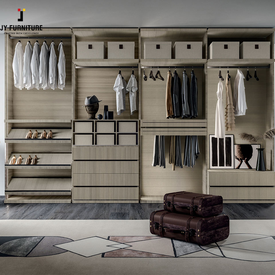 JY Furniture RTA Modular Estilo Europeo Dormitorio Armario Diseño Moderno Precio Competitivo para Hoteles Villas Panel de Madera Acabado