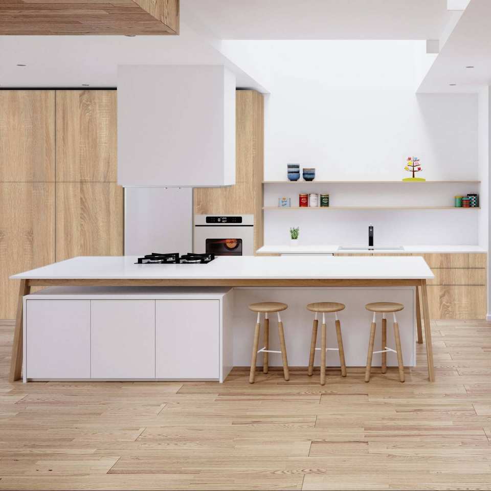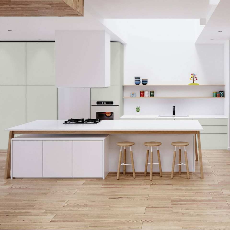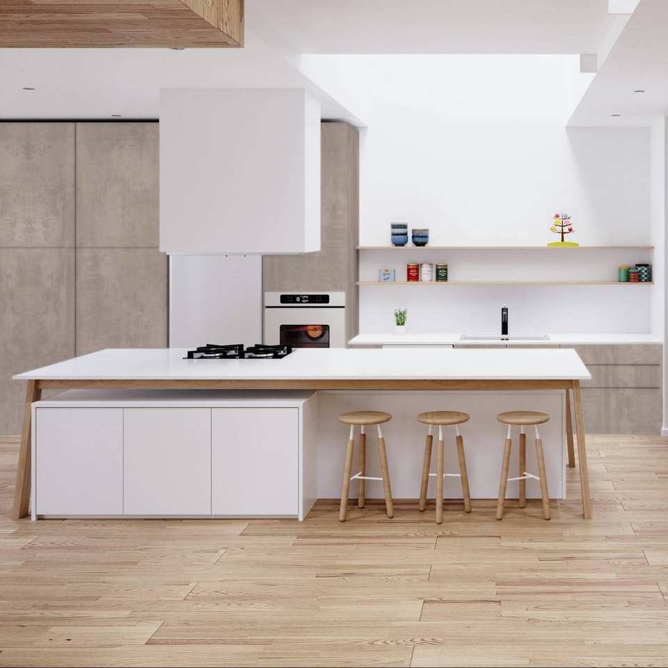 Gabinetes de Cocina Modernos Blancos Personalizados JY Project, Estructura de MDF, Juego Completo con Fregadero, Herrajes y Cajones Deslizantes Duraderos