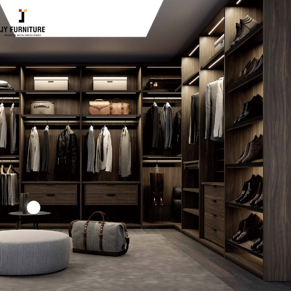 JY Vietnam lujo MDF alta calidad RTA Modular colgante Rob tamaño personalizado dormitorio armario espejo europeo para Hotel Villa