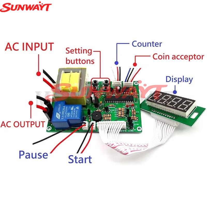 Placa de Control de Tiempo JY16 Operada con Monedas 110V/220V, Placa PCB de Control de Temporizador para Máquina Expendedora/Lavadora