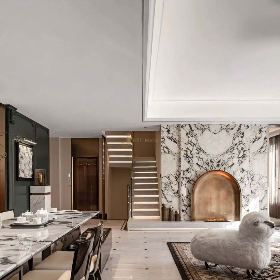 Chimenea JYF EX983 Multifuncional de Acero Inoxidable con Acabado Espejo, Estilo Art Deco, para Montaje en Suelo, Uso en Exteriores, Decoración de Lujo