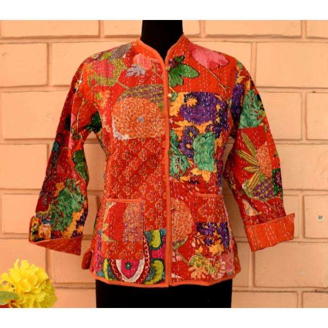 Nombre del producto:Chaqueta corta Kantha con parche de algodón estampado