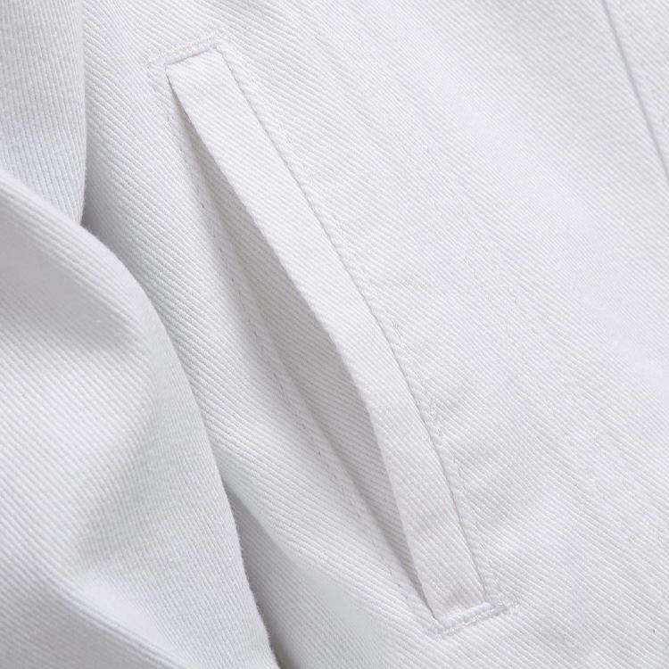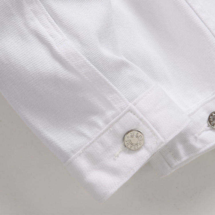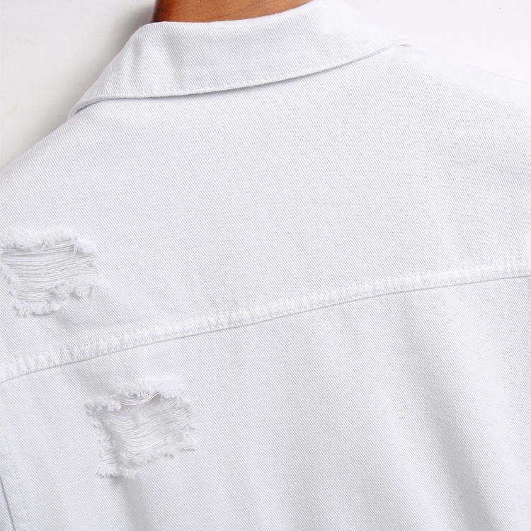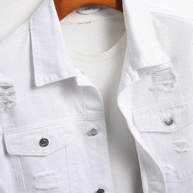 Chaqueta para hombre, al por mayor, unisex, de otoño, con cuello alto, de mezclilla premium blanca desgarrada